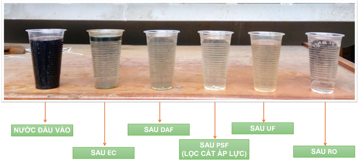 Hình ảnh tham khảo chất lượng nước trong quy trình xử lý tái sử dụng nước thải dệt nhuộm của chúng tôi: