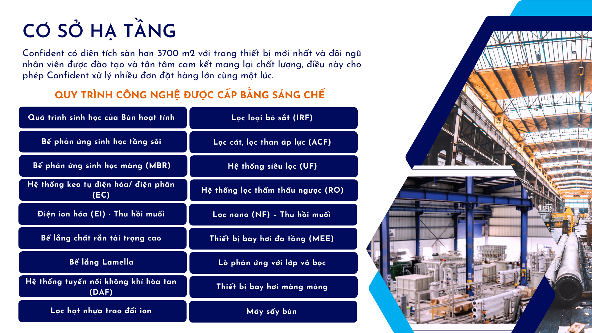 Confident Engineering India Private Limited là nhà cung cấp giải pháp xử lý và tái sử dụng nhiều loại nước thải từ các ngành công nghiệp khác nhau bằng các quy trình công nghệ tiên tiến và được cấp bằng sáng chế như quy trình keo tụ điện hóa (điện phân) và công nghệ Zero Liquid Discharge (Không xả thải chất lỏng).